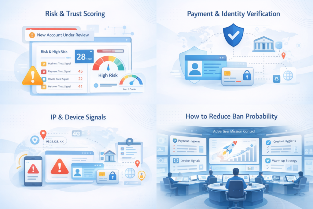 Media buyers often joke that the fastest way to see a “ban” is simply to create a new ad account. While that’s not far from reality, the underlying reason is not that platforms “hate new advertisers” – they simply operate on risk scoring, trust signals, and automated compliance systems.